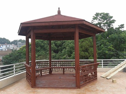 防腐木涼亭,是指用防腐木組建而成的涼亭。所使用的防腐木是經(jīng)過(guò)特殊防腐工藝處理后的木材,具有防腐爛、防白蟻、防真菌的功效。故此類涼亭穩(wěn)定性強(qiáng)、使用期限長(zhǎng)、性價(jià)比高。
