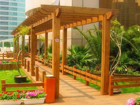 很多人買房子喜歡買頂樓,不僅僅是會當凌絕頂一覽眾山小啊,而是很多開發(fā)商給頂樓配送一個屋頂露天陽臺,面積很大。如果好好利用起來非常劃算,當然有更多人還是選擇將這一大塊地方做成自家的花園。以用來自己平時休息。因為面積有限涼亭的建造受限,很多很會選擇防腐木長廊來代替。那么在屋頂花園打造防腐木長廊需要注意什么呢?
