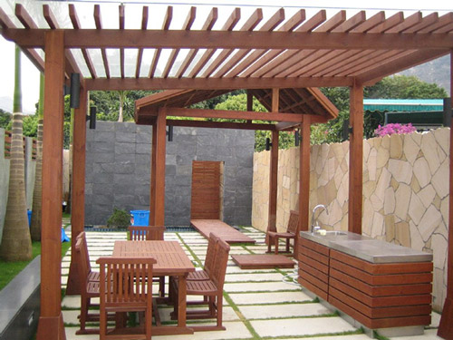 接著開始搭建基礎(chǔ)框架。按照設(shè)計尺寸,用防腐木搭建花架的立柱和橫梁框架。先安裝立柱,將立柱垂直固定在預(yù)先確定的位置上,可使用膨脹螺栓或預(yù)埋件進行固定,確保立柱穩(wěn)固不晃動。再用水平儀檢查立柱的垂直度,如有偏差及時調(diào)整。之后安裝橫梁,將橫梁水平放置在立柱上,用螺絲或螺栓將橫梁與立柱牢固連接,注意連接處要緊密貼合,避免出現(xiàn)縫隙。