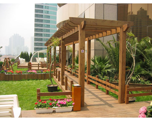 1.我國對于防腐木花架的研究時(shí)間不長,大至是從2006年開始,先進(jìn)入國內(nèi)該研究領(lǐng)域,并制成防腐木制成品,其后多家企業(yè)也進(jìn)入該領(lǐng)域,進(jìn)行效仿和研究。 花架又稱棚架、綠廊,是用剛性材料構(gòu)成一定形狀的各家工攀緣植物攀附的一種園林設(shè)施。