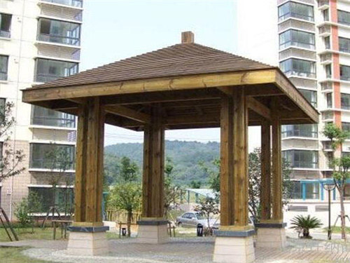 防腐木亭子具有體積不大、用料較少、設(shè)計(jì)靈活、建筑方便等特點(diǎn),很適合園林景觀布局的需要。防腐木亭子是在我國園林景觀綠化中運(yùn)用多的一種建筑形式。無倫是古典園林景觀,還是現(xiàn)代園林景觀中,都可以看到各種各樣豐富多彩的防腐木亭子,屹立于山岡之上;或依附在建筑之旁;或漂浮在水池之畔。以玲瓏美麗、豐富多樣的形象與園林景觀中的其他建筑、山水、綠化等相結(jié)合,構(gòu)成一幅幅生動(dòng)的畫圖。貴州防腐木亭子成了為園林景觀空間和自然山水增添美色的重要點(diǎn)綴建筑物。防腐木亭子的作用一方面是點(diǎn)綴園林景觀空間、提升環(huán)境層次,另一方面是解決人們?cè)诼糜涡蓍e中駐足休息,納涼避雨、眺望景色的需要。